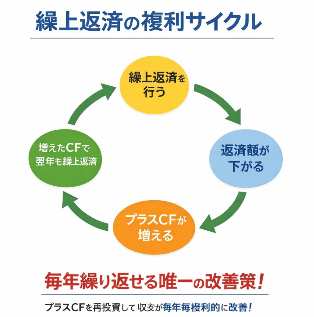 - 繰上返済は“毎年繰り返せる”ため、複利的に収支を改善できる唯一の手段